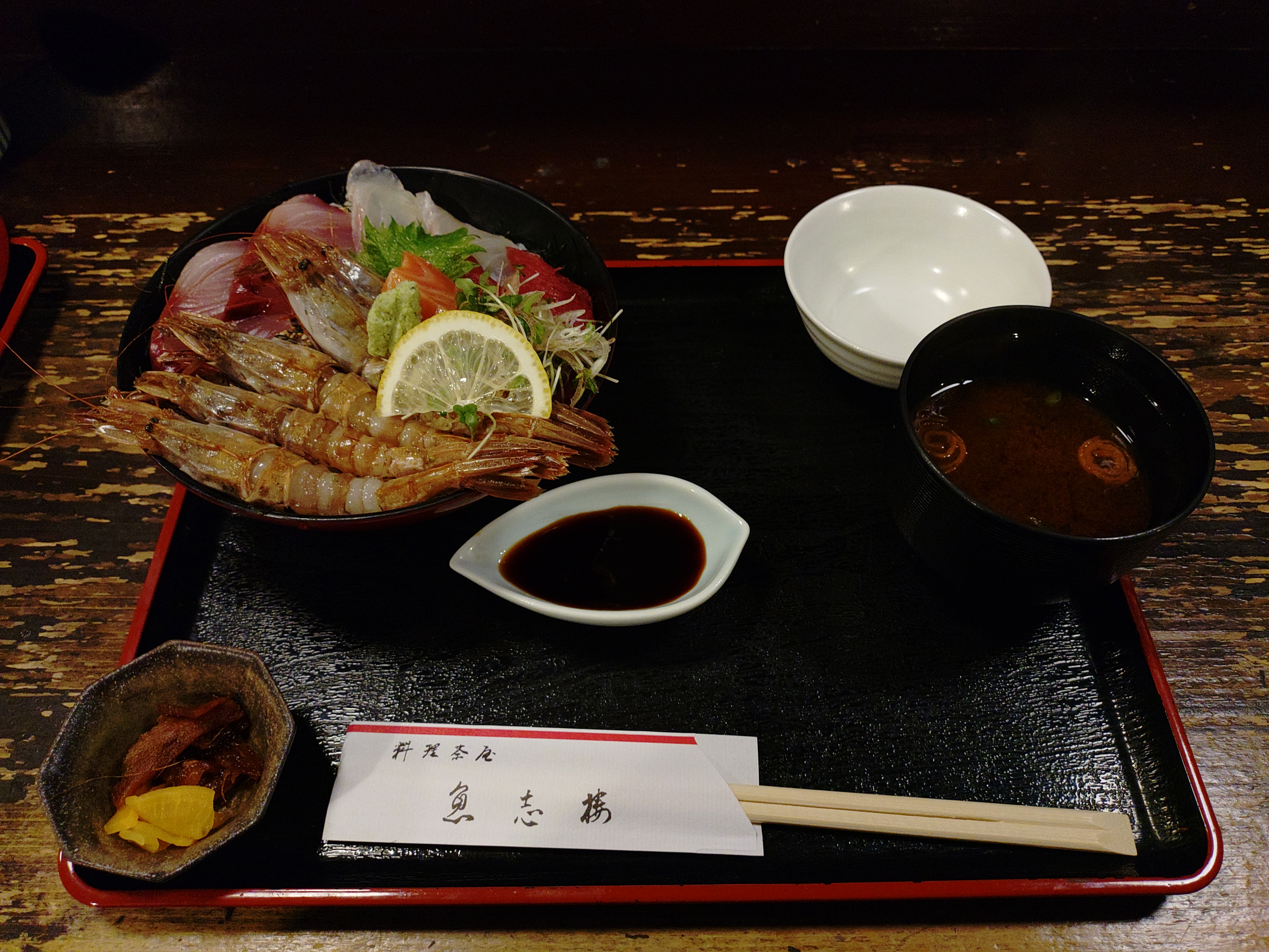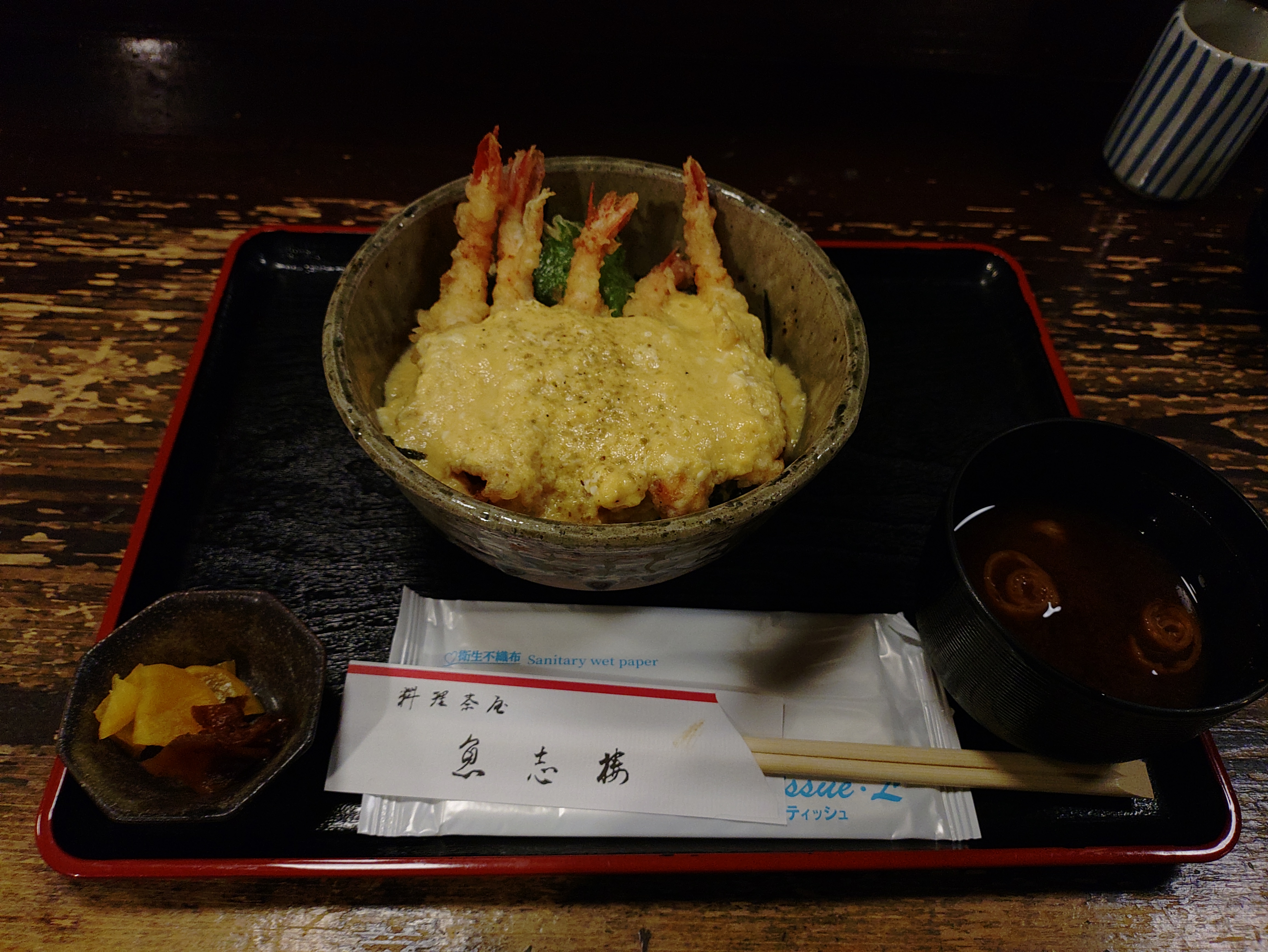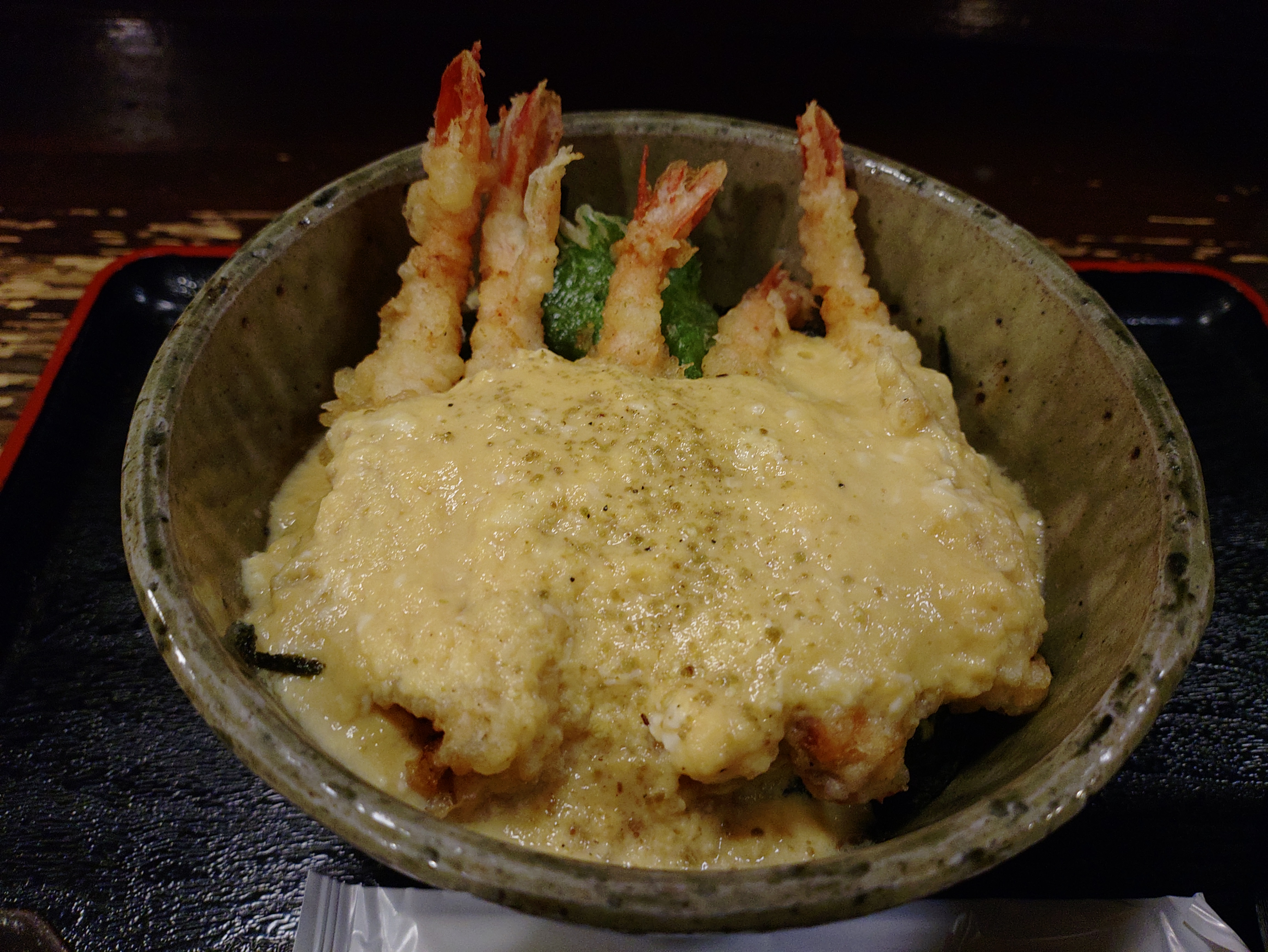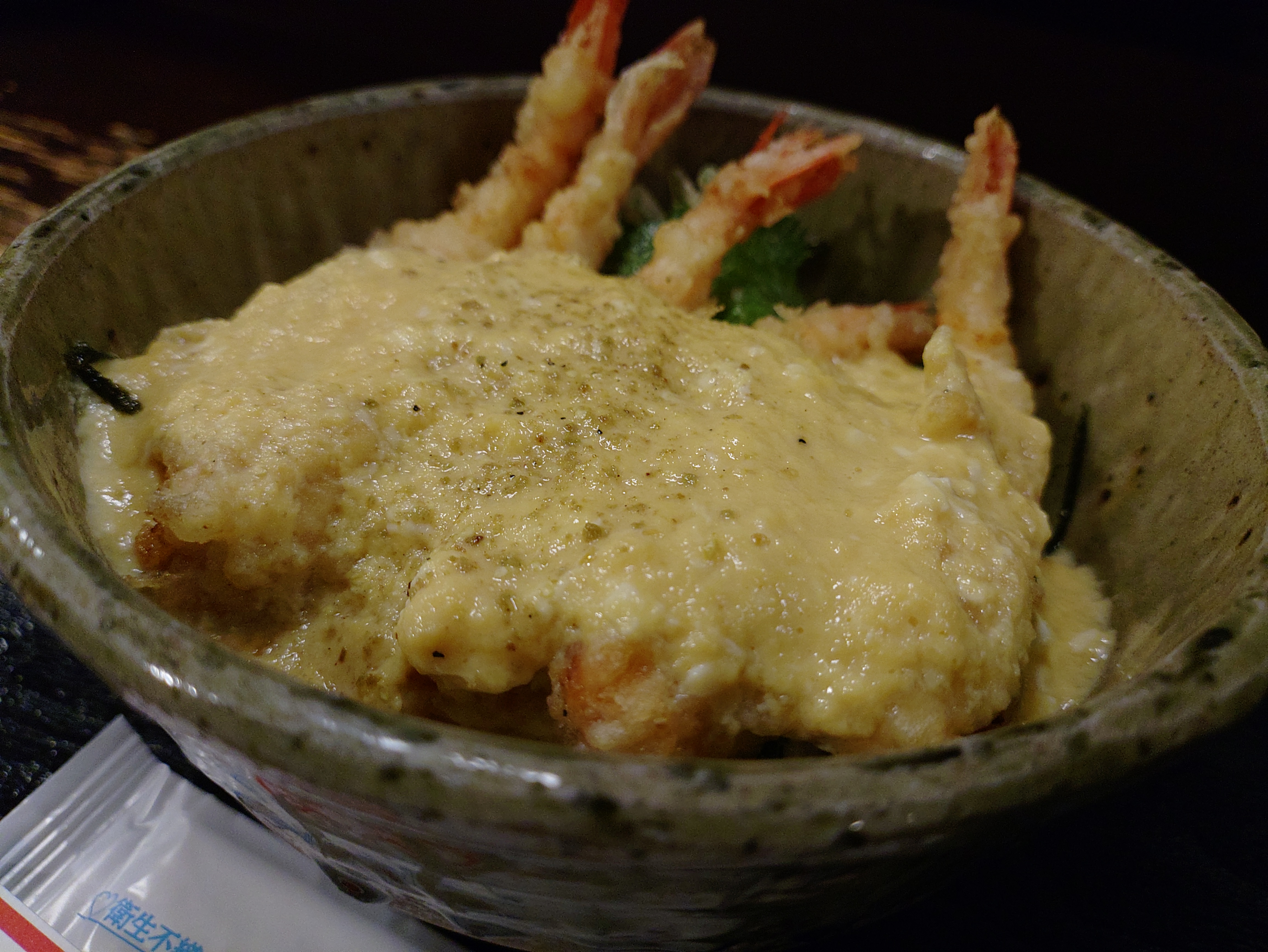 コメント:玉子とじ甘エビ天丼。ガサエビ丼と共に